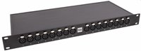 Sescom's SES-XCAT-16 series features a 1RU breakout box containing (16) 3-pin XLRs that adapt to (4) RJ45s wired according to AES72/Type 2O standards. The 16 XLR channels are split equally between the RJ45 channels and marked accordingly for easy channel identification. The SES-XCAT-16 series is an ideal solution for interconnecting multichannel XLR runs with wired AES72/Type 2O RJ45 connectors. This series is available with 16 Female or 16 Male XLR connectors.